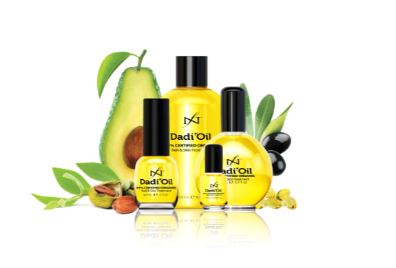 Dadi’ Oil is een verzorgende nagelolie die gemaakt is om flexibiliteit, stevigheid en glans te geven aan de naturlijke nagel, aan nagelproducten en aan de nagelriem! Dadi’ Oil wordt snel opgenomen en is niet vet. Het brengt drie gecertificeerde organische olieën samen. Een gecertificeerde organische olie is een hoogwaardig product afkomstig van boeren die duurzame technieke hanteren en geen kunstmatige mest of bestrijdingsmiddelen gebruiken.